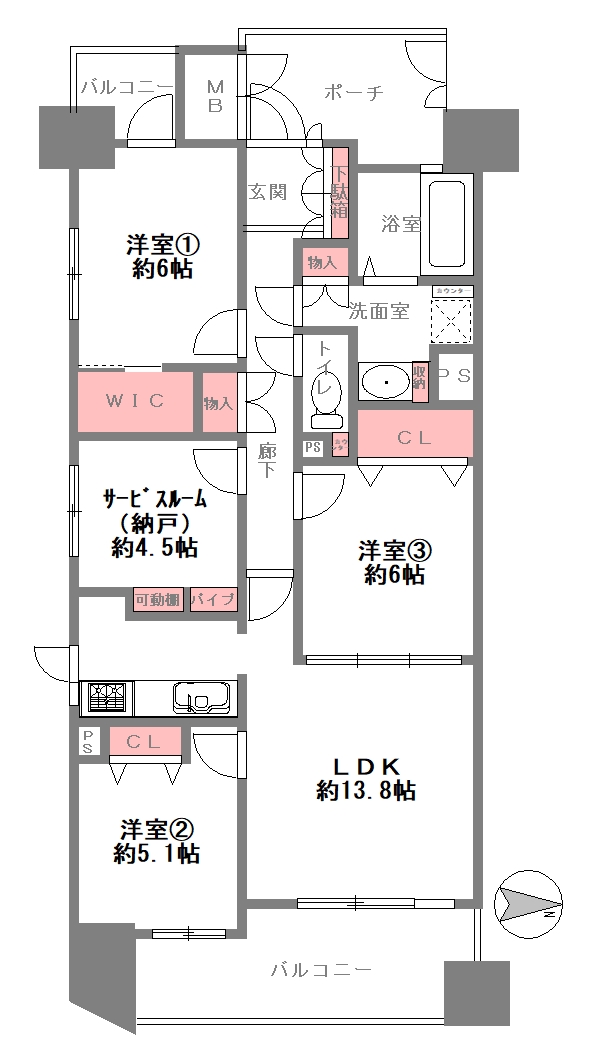 | 面積 | 80.59m²(24.37坪) | 計測方式 | 壁芯 |