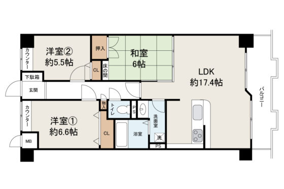 | 間取内容 | LDK17.4帖 1階 1室和室6帖 1階 1室洋室6.6帖 1階 1室 | ||